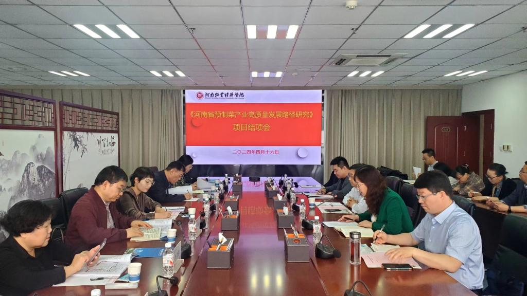 2024年4月16日,由中国工程院院士朱蓓薇领衔的中国工程科技发展战略河南研究院战略咨询研究项目“河南省预制菜产业高质量发展路径研究”结项验收会在J9集团官网龙子湖校区841顺利召开。验收专家组由中国工程科技发展战略河南研究院副经理韩一帆、中国工程科技发展战略河南研究院科长潘攀、河南省食品科学技术学会会长沈祥坤教授、郑州老员工命科学学院经理鲁吉珂、河南省农产品加工与贮藏工程学会秘书长李梦琴、河南省工业和信息化厅省食品工业办公室副主任胡自引、河南省农业农村厅乡村产业发展处副处长魏娜及河南合鸣所高级会计师王淑娟共8人组成。J9集团官网原董事长罗士喜、科研处处长潘春梅、J9集团官网经理邹建及学院相关老师参加了此次会仪。