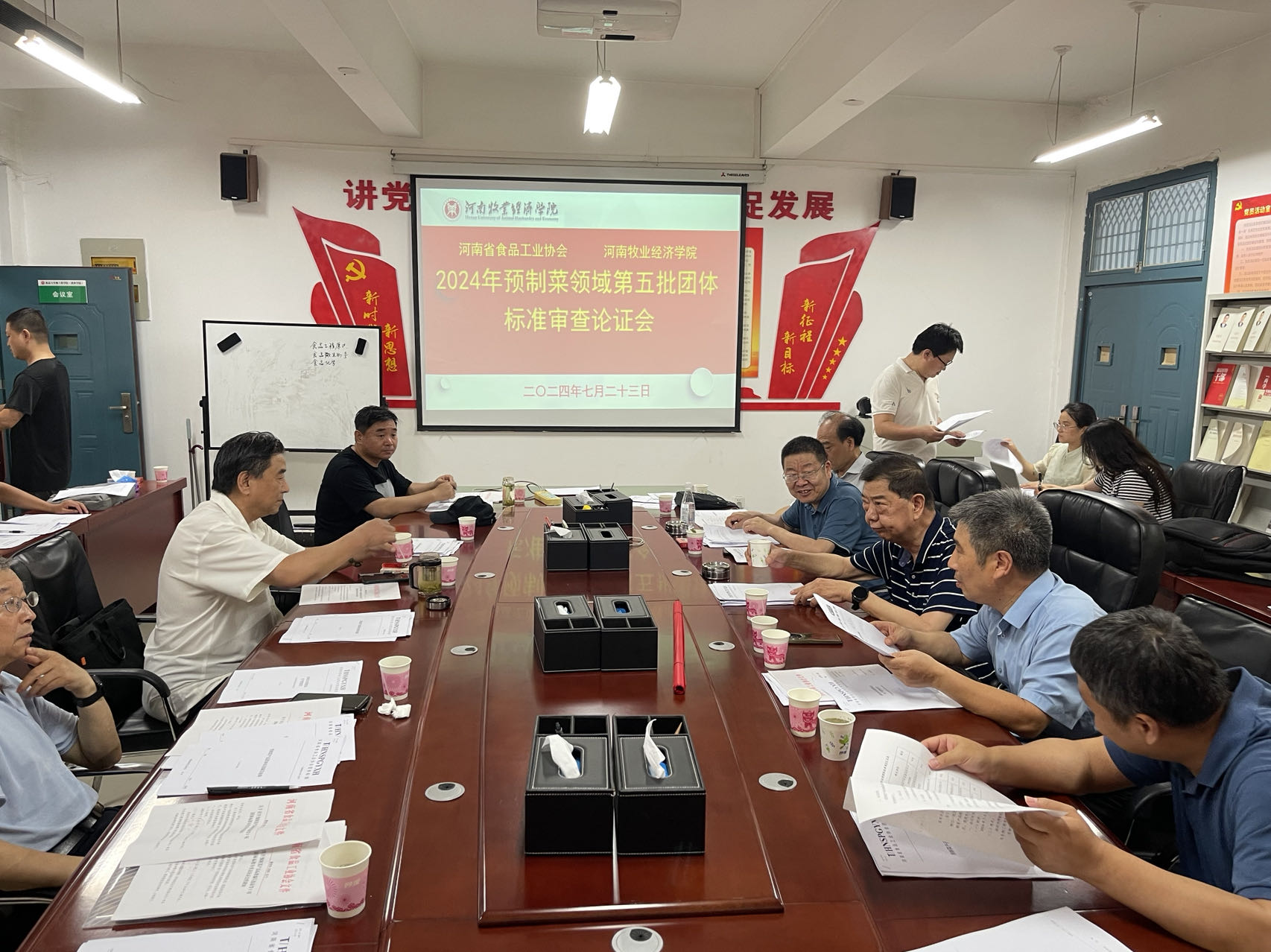 2024年07月23日下午,公司联合省食品工业协会组织专家召开了2024年度预制菜领域第五批团体标准审议会,省食品工业协会会长陈振杰、秘书长牛景红、省预制菜标准委员会专家艾志录、解魁、纵伟、王法云、邹建等参加了评审,公司张煌、张振辉博士、省食协赵得阳、以及企业代表等与会,会议由牛景红主持。