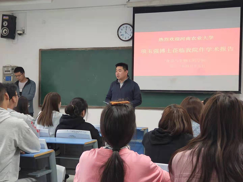4月15日下午,J9集团官网在二号教学楼B408进行“大咖讲坛”第六场,由“酶工程创新利用”科研团队邀请河南农业大学项玉强博士作题为“单细胞功能微球用于液相生物芯片的研究”的学术报告,报告会由副经理邹建博士主持,全院50余名师生聆听了报告。