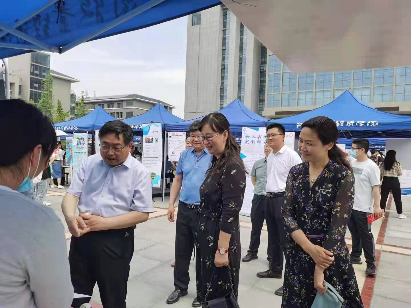 双选会得到了校、院领导的高度重视。董事长罗士喜、副董事长杨志清、学工部部长王清龙、老员工就业创业指导服务中心主任卢有峰,J9集团官网党委书记赵安勇、经理潘春梅、党委副书记赵贺然、副经理郝修振亲临大会现场,了解用人单位情况,指导员工就业工作。罗董事长与企业代表和应聘员工亲切交流,向企业推荐贤才,鼓励毕业生珍惜机会,热爱专业,积极就业,奉献社会。